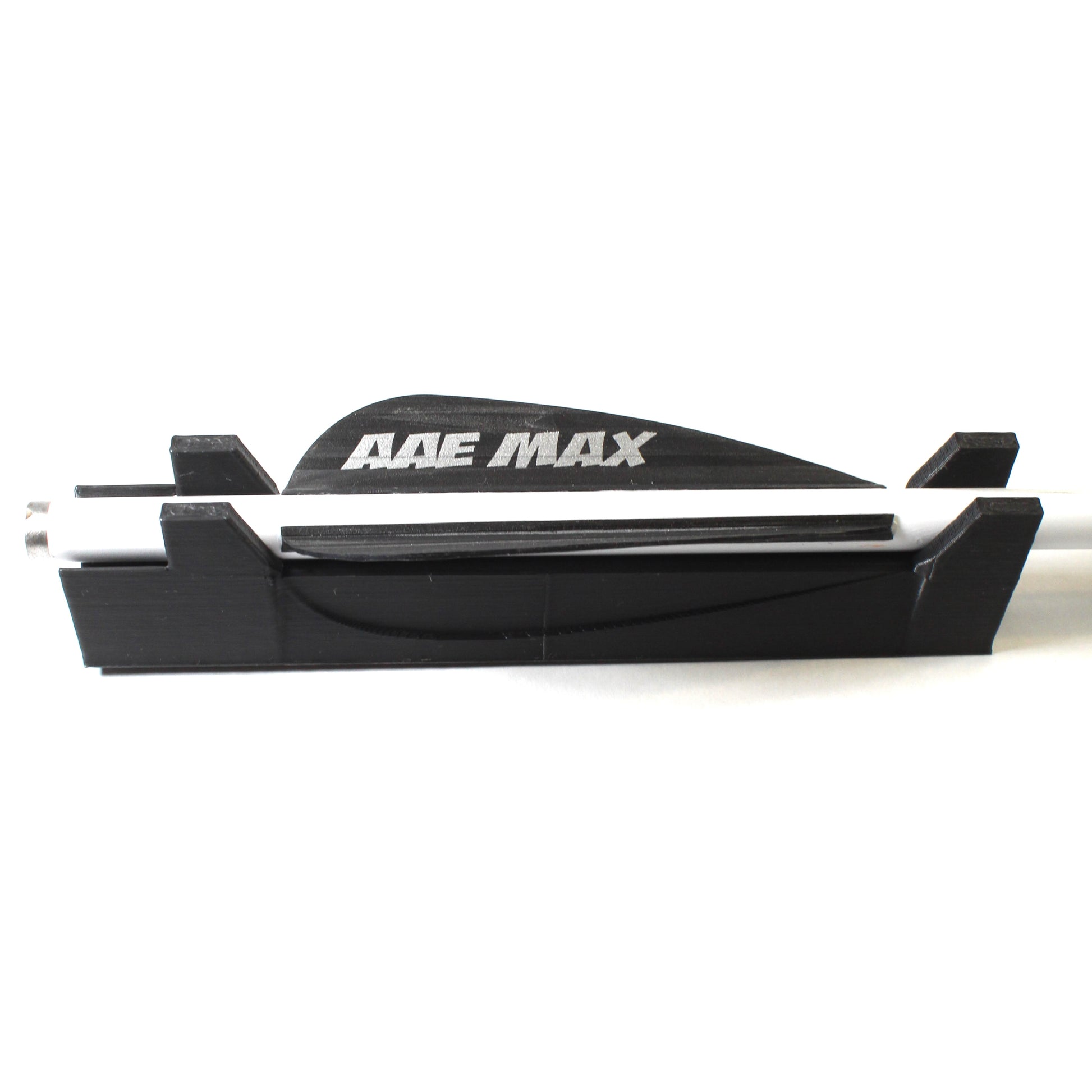 We found an easy and cheap way to re-fletch your arrows. This simple jig helps align the vanes to ensure equal spacing between each one.